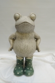 Żaba z cementu w kaloszach
