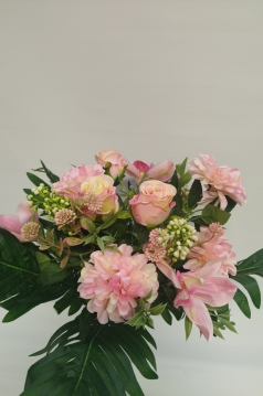 Bukiet róża+cynia+storczyk