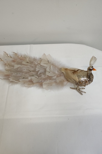 Ptak na klamerce z ogonem z piór