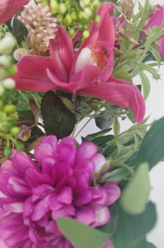 Bukiet róża+cynia+storczyk